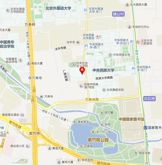 中央社會主義學(xué)院教學(xué)樓(中央民族大學(xué)西門、民族大學(xué)南路甲4號)。
